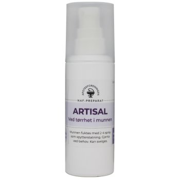 Artisal munnspray brukes som spytterstatning ved munntørrhet (xerostomi).