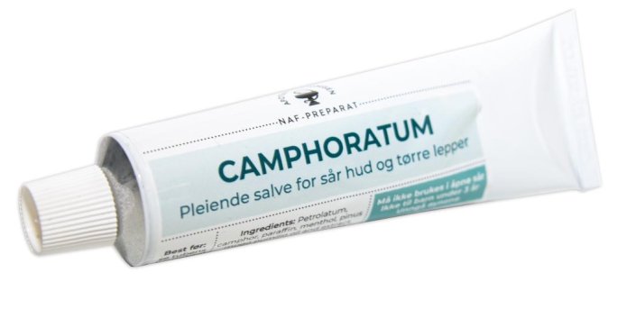 - Preparatet inneholder kamfer og anbefales brukt på et begrenset hudområde og i korte tidsrom.