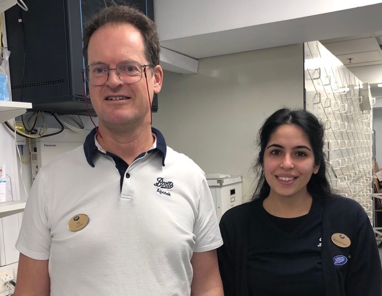 Apoteker Erik Fred Oscar Pomp og farmasøyt Manpreet Kour Hans ved Boots apotek Loddefjord har undersøkt hvordan PLL kan og bør påvirke apotek (foto: privat).